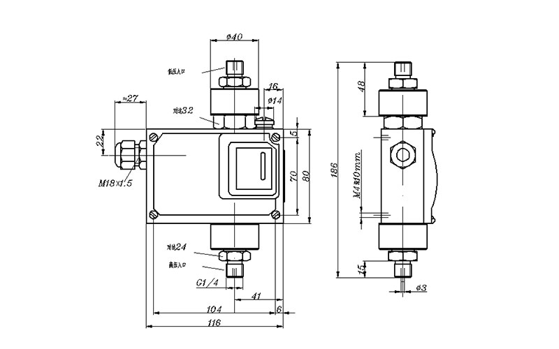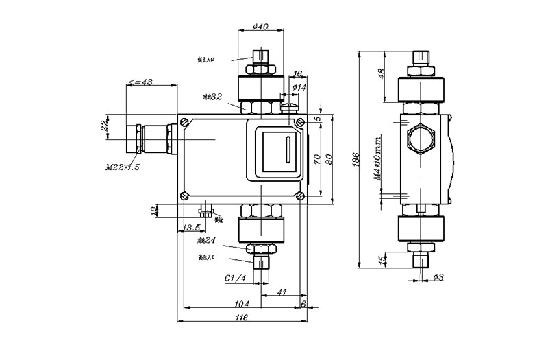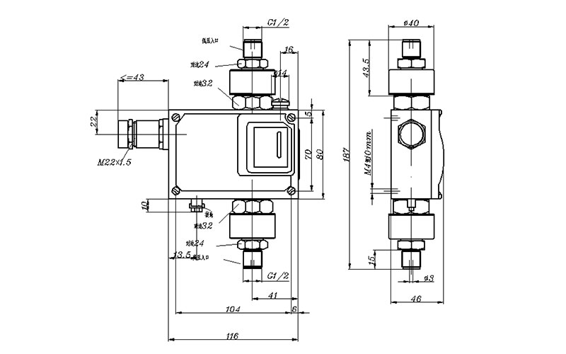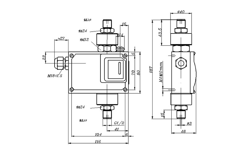 540/7DD差壓開關(guān)外形尺寸及安裝尺寸(單位:mm)