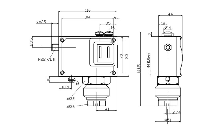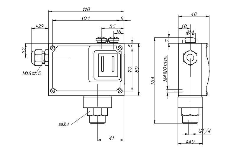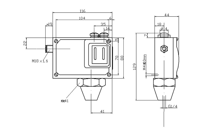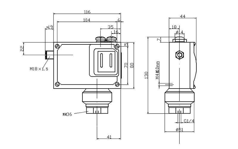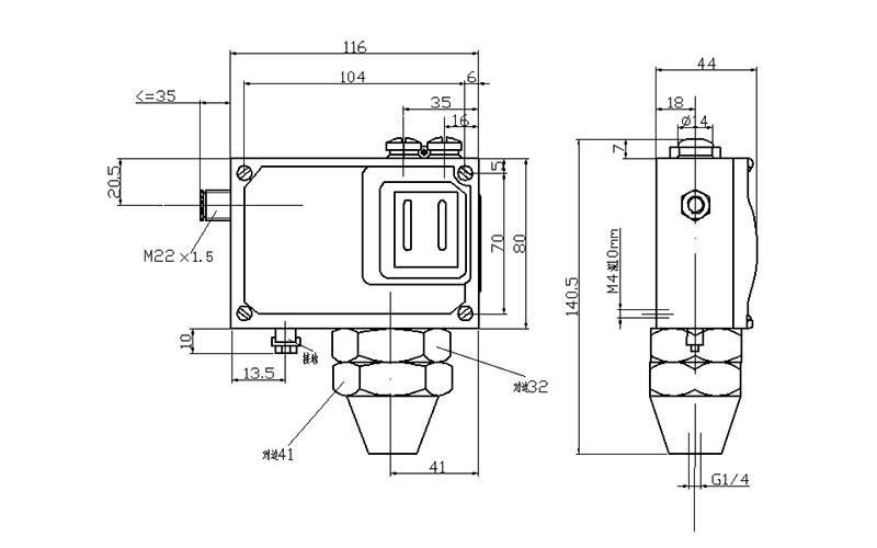 502/7D防爆壓力開關外形尺寸及安裝尺寸(單位:mm)