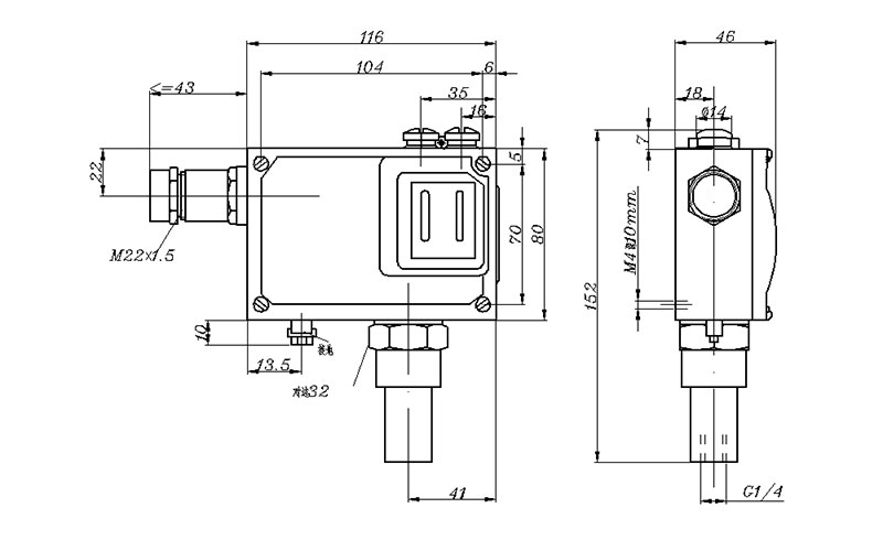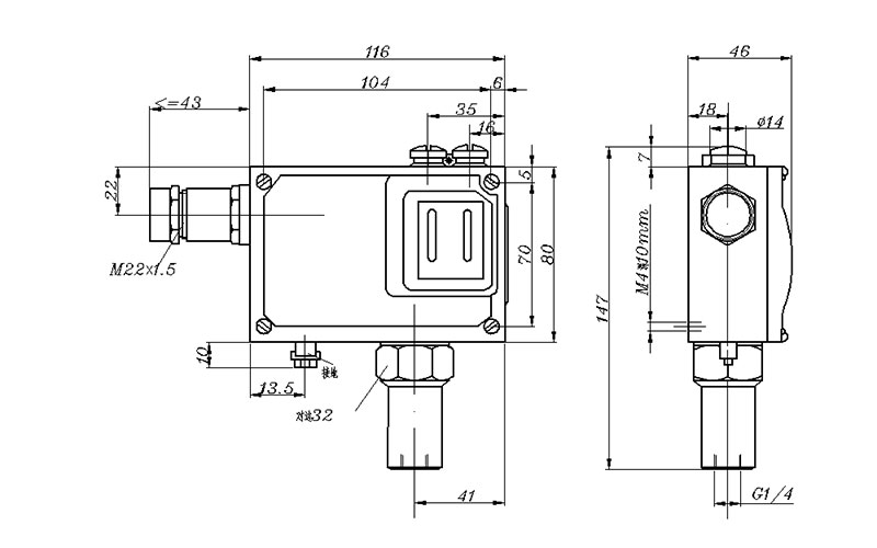 505/7D防爆壓力開關(guān)外形尺寸及安裝尺寸(單位:mm)