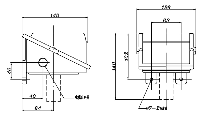 500/6D 多值壓力開關(guān)外形及安裝尺寸(單位:mm)