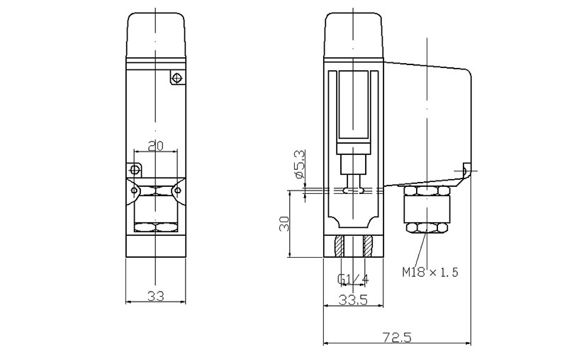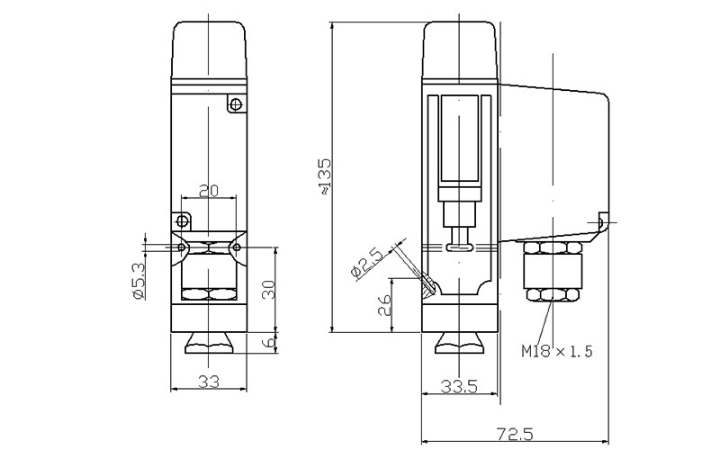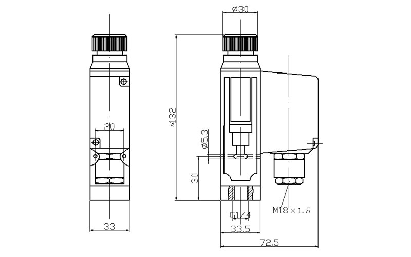 505/8D壓力開關(guān)外形尺寸及安裝尺寸(單位:mm)