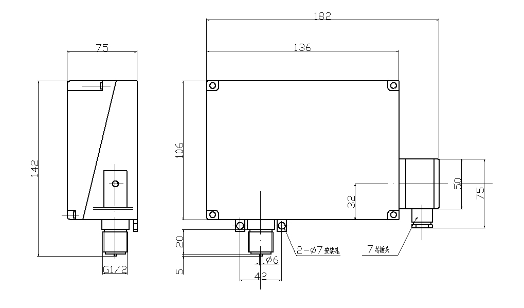512/10D 壓力開(kāi)關(guān)外形尺寸及安裝尺寸(單位:mm)