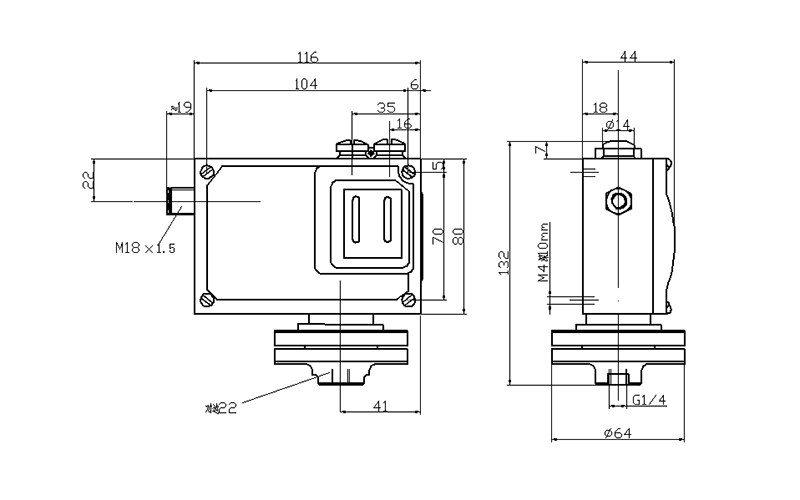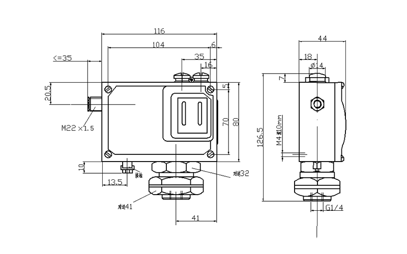 500/7D壓力開關(guān)外形及安裝尺寸(單位:mm)